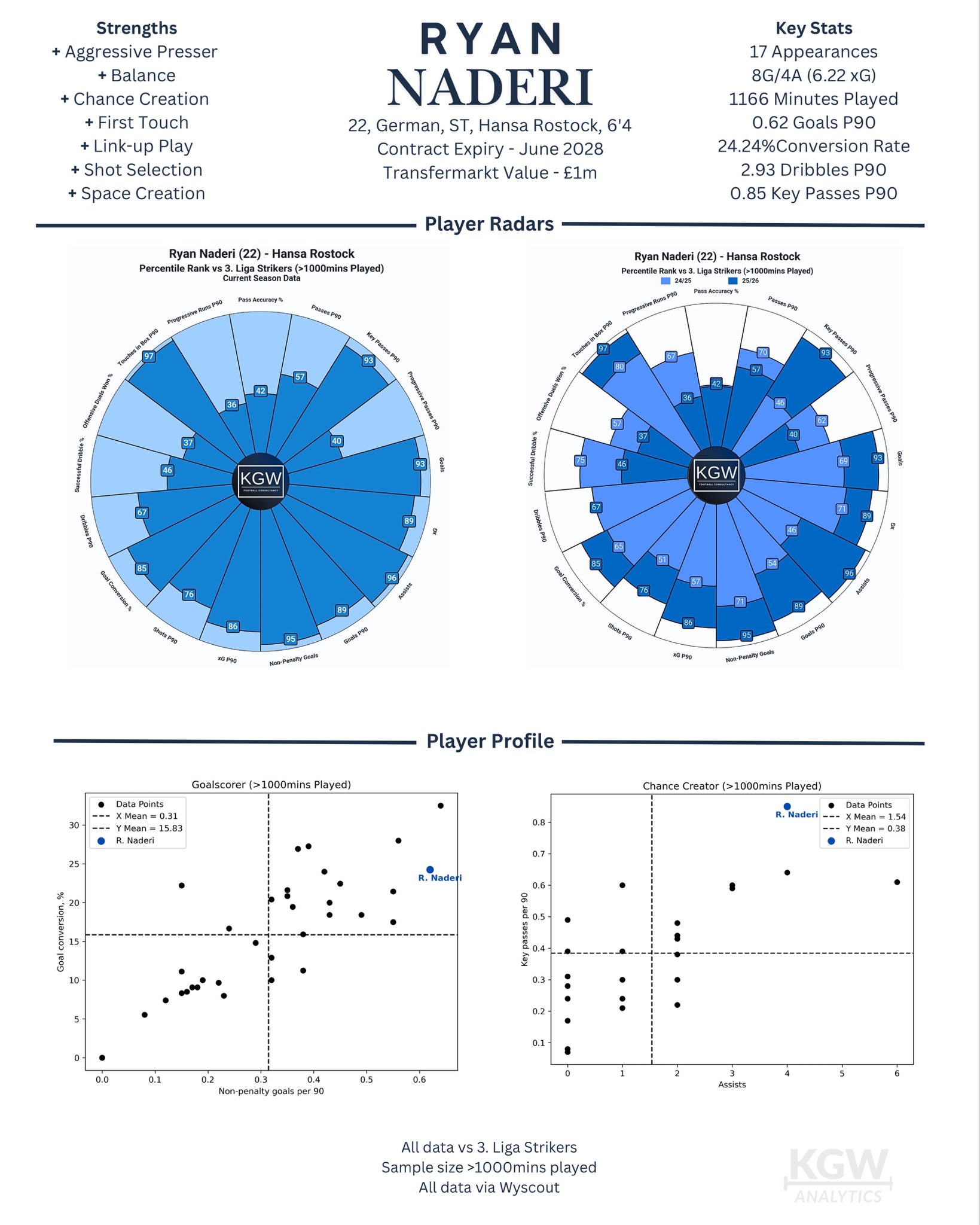 Ryan Naderi :: 2025/2026 - Hansa Rostock - Player Profile. Ryan Naderi's recent injury history includes a significant 163-day muscle injury in the 2024/25 season, a torn muscle fiber (12 days) in 24/25, and a torn lateral ankle ligament (36 days) in 23/24. He has experienced multiple, recurring muscular issues that have caused him to miss significant playing time over the past few seasons.